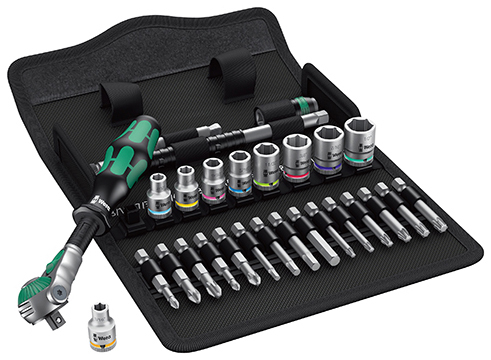 1把1/4"驱动的Zyklop Speed棘轮扳手,9个Zyklop套筒,1个带自由旋转护套的Zyklop延长杆(长款),1个摆动延长杆,1个带快速接头的转接头,15个批头
