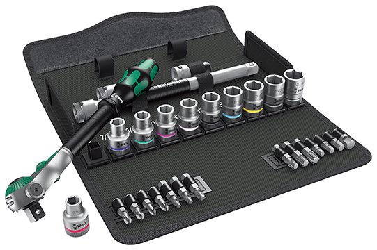 1把1/2"驱动的Zyklop Speed棘轮扳手,10个Zyklop套筒,1个带自由旋转护套的Zyklop延长杆(长款),1个摆动延长杆,1个带快速接头的转接头,14个批头