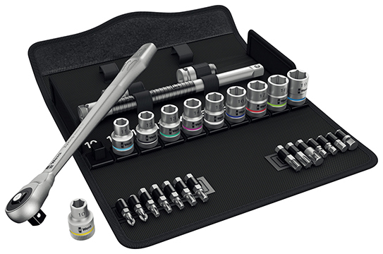 1把1/2"驱动的Zyklop Metal推杆换向棘轮扳手,10个Zyklop套筒,1个带自由旋转护套的Zyklop延长杆(长款),1个摆动延长杆,1个带快速接头的转接头,14个批头