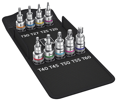 9个1/2"驱动的Zyklop旋具套筒,用于TORX®梅花螺丝,带固持功能