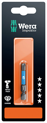 设计:冲击技术可确保产品在极端条件下也具有超长的使用寿命,因为其充分利用了材料特性,优化了几何设计,尤其适合与传统的冲击螺丝刀一起使用。坚固的金刚石涂层可降低螺丝头因摩擦阻力增强而滑出的风险。带“易寻”色标系统:通过颜色标识(蓝色=六角)和尺寸标示可轻松找到所需批头
