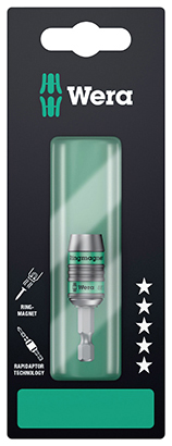 设计:带快速接头,可以单手操作换装批头,带环形磁铁和止动套筒,用于使用夹具牢固地拆装螺丝